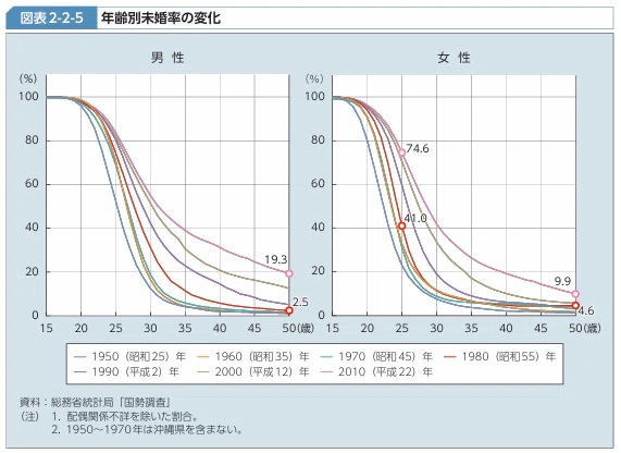 しかしその一方で、未婚率は上昇の一途をたどります。